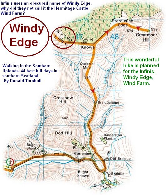 Brorderers and say they are loyal to Scotland, and as part of Northern British Windpower, stand up against Northumberland and put mills on the Scottish side of the border, but this time the families of Ferniehirst (today’s Clan Kerr Chief), Cessford (today’s Roxburghe -Ker), and Redheugh (today’s Clan Elliot chief), are all of Northern British Windpower (NBW) now Northern British Wind Power (NBWP), and are all in support of Infinis, Windy Edge of England. The Clan chiefs Kerr, and Elliot, and Roxburghe (Cessford) though last time with Northumberland supported the Scottish, this time are in typical border format supporting the English, and the Scottish Border Council is at their command.