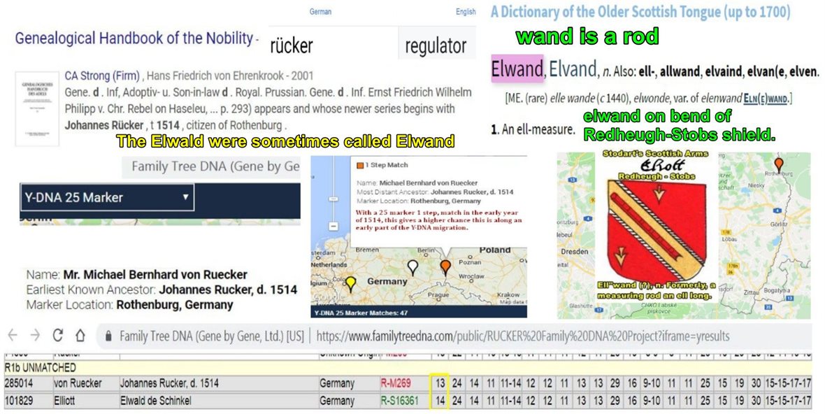 Can you believe being kicked out of the FTDNA Armstrong blog, both Rich and myself, and he had such an excellent question. Chief has an ‘elwand’ on her arms, an Edinburgh standard of measuring length in 16th century Scotland and us Elwald were sometimes called Elwand, guess we could just measure. Ending up in Germany as ‘rücker’, as regulators. Guess regulators can measure. He’s some genealogical referencing. The non genetic genealogical scientist call it ‘spam’.