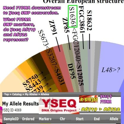 23andME where able to find downstream R-S16361 without yDNA/Y-DNA testing, and so far that is the lowest downstream SNP I have been able to test through FTDNA so used Yseq for my testing.