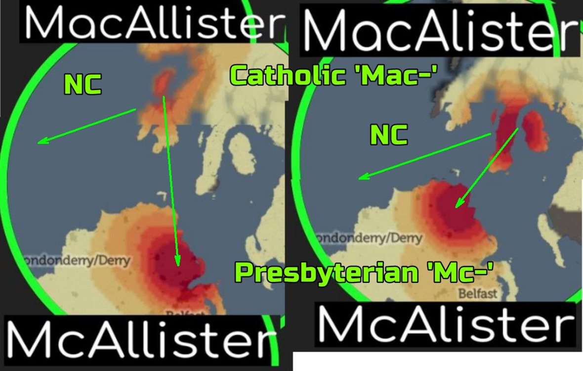 https://named.publicprofiler.org/ “The Clan MacAlister is on of the principal branches of Clan Donald and descends from the thirteenth-century Alexander, brother of Angus Mór and son of Donald, the eponymous ancestor of the MacDonalds. Donald was the grandson of Somerled of Argyll. As such the clan is Irish by origin, Somerled being a descendant of Collas of Oriel. The clan territory was Kintyre and they were also numerous in Arran and Bute. From this region the MacAlisters where brought to northeast Ulster by the MacDonnels in the fourteenth century. They are one of the great galloglass families of Ireland.” The Book of Ulster Surnames, by Robert Bell pages 128-9. In US in 1880; 3,304 McAlisters (mainly NC&PA), 55,787 McAllisters (mainly PA&NY) https://forebears.io/surnames/mcalister https://forebears.io/surnames/mcallister Even though Bryant McAllister is not at ISU, something for him to think about.