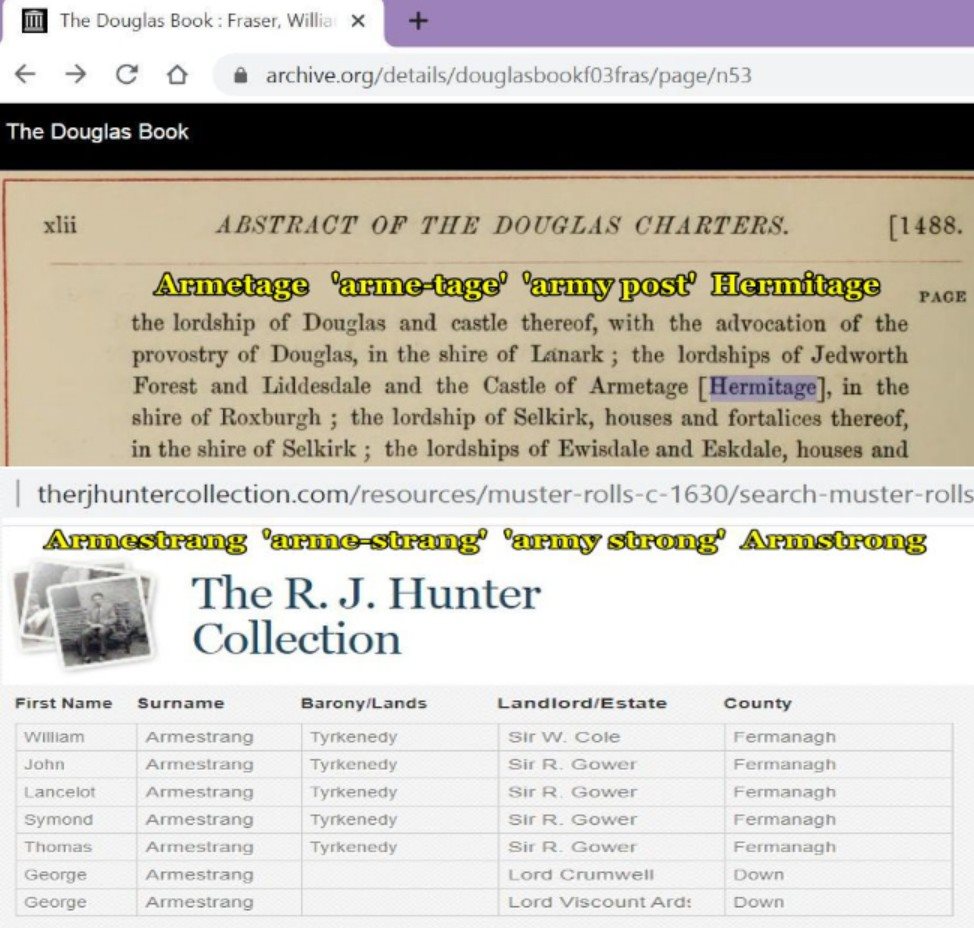 https://d3tije9h5o4l4c.cloudfront.net/social-photos/3419772?dpr=2&fit=max&h=307&w=590 https://gorrenberry.com/armstrong-fairbairn-elliot-y-dna-link/ https://gorrenberry.com/rich-rucker-clan-armstrong-dna-question/ Rich Rucker has a question! https://www.familytreedna.com/groups/armstrong/about “I thought that Y-DNA was supposed to be so clear, and direct. My surname is Rucker, as was my father’s, his father’s and his father’s. My Y-DNA results, the few hundred I have now after doing the Y-67 test last year, have zero Ruckers and 90+% Armstrongs. I get it that this-isn’t an exact science, but I am getting no where. How does one make progress when there is an undocumented paternity? Folkk must think I am looking for child support of something, but we are talking about an event back in 1830. Advice would be welcomed. Thanks.” https://gorrenberry.com/rich-rucker-clan-armstrong-dna-question/ Rich Rucker and I were kicked off of FTDNA Armstrong. Guess who the Armstrong are paying attention to? https://en.wikipedia.org/wiki/Clan_Armstrong https://de.wikipedia.org/wiki/Clan_Armstrong https://en.wikipedia.org/wiki/Clan_Eliott https://de.wikipedia.org/wiki/Clan_Elliot https://nvk.genealogy.net/map/1890:Armstrong,1890:Elliott,1996:Armstrong,1996:Elliott Armstrong and Elliott have been migrating to Germany. Unlike the people of the the Union Jack, England and it’s puppet Scotland, in their language of English, it seems like the people of the German language, listen to the Armstrong and Elliott. It can be noted in the difference in translation between the English Clan Eliott, and the German Clan Elliot above. https://archive.org/details/chroniclesofarms00arms/page/n13 https://books.google.com/books?id=nFr7oQEACAAJ&pg=PR1&source=gbs_selected_pages&cad=3#v=onepage&q&f=false https://historyireland.com/early-modern-history-1500-1700/sheep-stealers-from-the-north-of-england-the-riding-clans-in-ulster-by-robert-bell/ https://elwald.com/schafdieb-aus-dem-norden-englands-die-riding-clans-in-ulster-von-robert-bell/