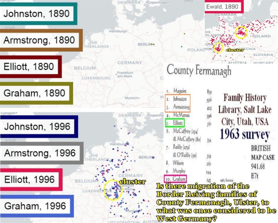 Could they have moved when the violence ‘The Troubles’, was going on along the County Fermanagh border? Guess if there is any hardening of the border, people of County Femanagh may want to move to Germany to get away from violence. https://d3tije9h5o4l4c.cloudfront.net/social-photos/3441022?dpr=2&fit=max&h=234&w=590 https://nvk.genealogy.net/map/1996:Maguire,1996:McManus,1996:Johnston,1996:Armstrong,1996:Elliott https://named.publicprofiler.org/