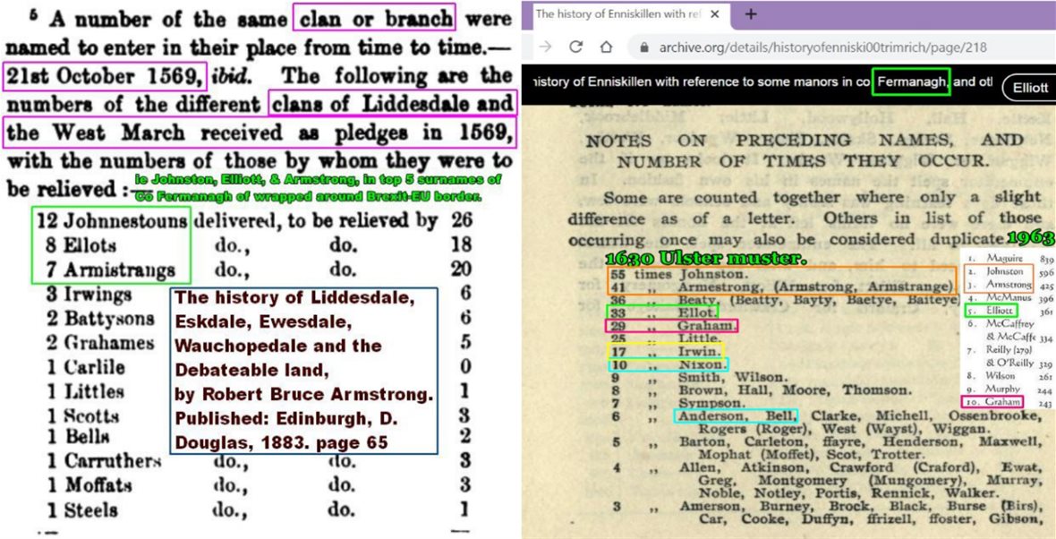 https://d3tije9h5o4l4c.cloudfront.net/social-photos/3449606?dpr=2&fit=max&h=301&w=590 The History of Liddesdale, Eskdale, Ewesdale, Wauchopedale and the …, Volume 1 By Robert Bruce Armstrong https://books.google.com/books?id=nFr7oQEACAAJ&pg=PA65&source=gbs_selected_pages&cad=3#v=onepage&q&f=false The history of Enniskillen with reference to some manors in co. Fermanagh, and other local subjects by Trimble, William Copeland, 1851-1941 https://archive.org/details/historyofenniski00trimrich/page/218 ‘Sheep stealers from the north of England’: the Riding Clans in Ulster by Robert Bell https://www.historyireland.com/early-modern-history-1500-1700/sheep-stealers-from-the-north-of-england-the-riding-clans-in-ulster-by-robert-bell/ The Mapping of Ulster-Scots https://www.libraryireland.com/gregg/images/mapping-ulster-scots-9.jpg https://www.libraryireland.com/gregg/mapping-ulster-scots.php Muster Roll for Tullyhogue (Tullaghoge) 1610 – Transcribed by Teena http://freepages.rootsweb.com/~cotyroneireland/genealogy/muster/tullyhogue1610.html