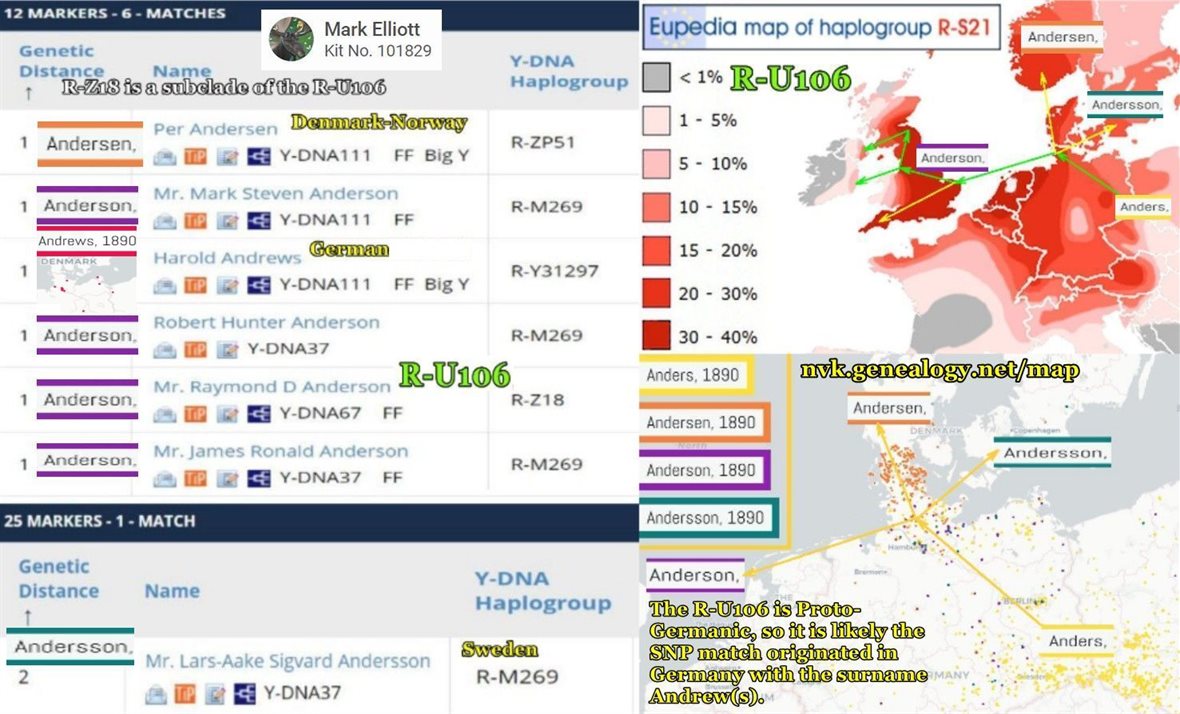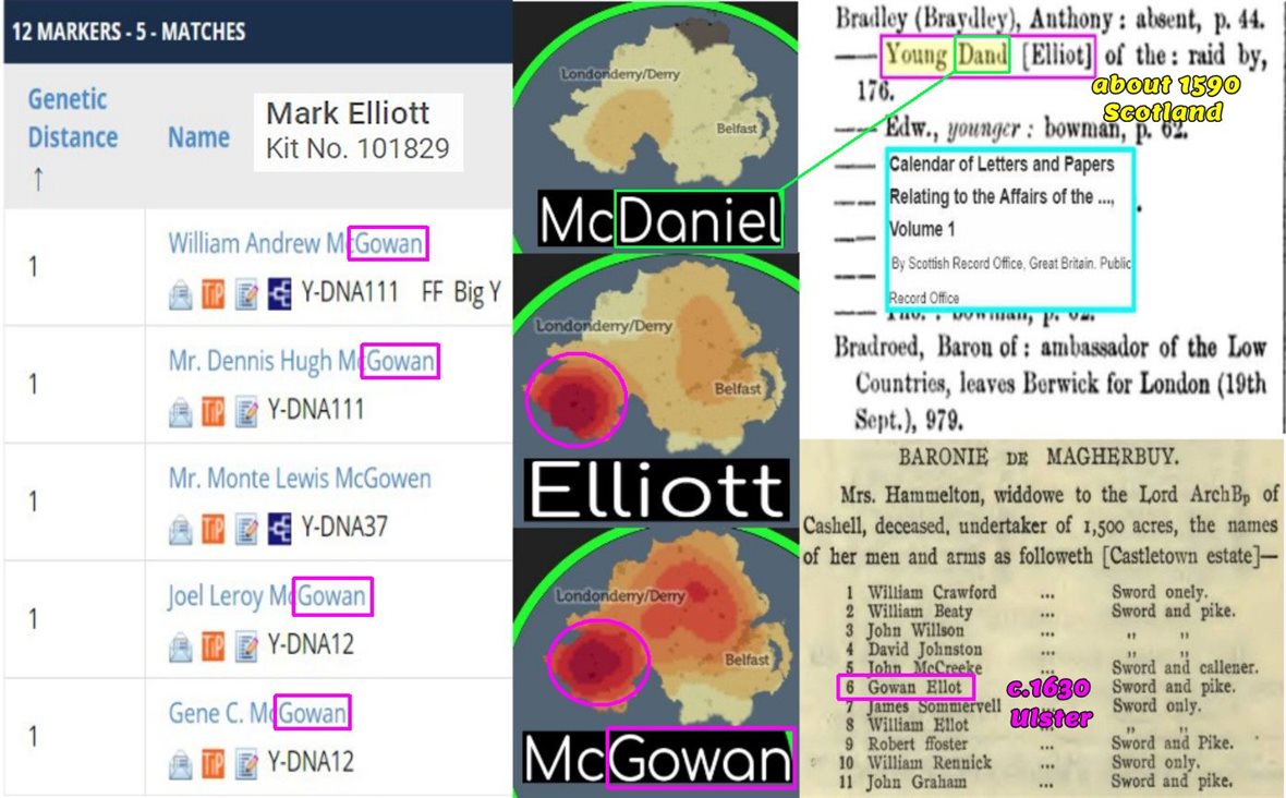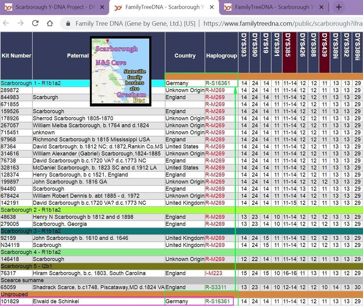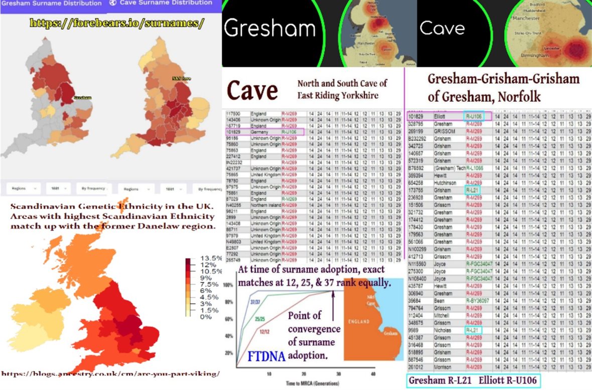 https://www.familytreedna.com/faq-markers.aspx 12/12 29 times 30 years a generation is 870 years. 2020-870=1230, at the time of the Elwald Elliot of East Anglia. https://en.wikipedia.org/wiki/Beck_Hall https://gorrenberry.com/wp-content/uploads/2015/05/Norfolk-Suffolk-1.png In accordance to FTDNA web site. Why do I match men with different surnames? https://www.familytreedna.com/learn/user-guide/y-dna-myftdna/y-matches-page/ …. “The main place that you will see matches with many different surnames is the Y-DNA12 Marker Matches section. The time to a common ancestor for these matches may extend beyond genealogical records and the adoption of surnames.” With stating related beyond adoption of surnames, plus; Gresham, Norfolk, North and South Cave, and ‘de Scorborough’ likely evolving into Scarborough, an showing numerous matches with more then half the ones test with those surnames, and FTDNA showing graphically that at 29 generations https://www.familytreedna.com/images/probabilities.gif at 95%, which the chief is vikings carrying my R-U106 Y-DNA recorded at 29 generations, plus recorded history of the Chronicles of the Armstrong https://archive.org/details/chroniclesofarms00arms/page/n13 of the Elwald Elliot of Crowland-Croyland, of the Fenlands. With largest percent of matches leaning towards Gresham, and -ham meaning home and home is the place, and Elwald later found in Cottingham and York in the fifteenth, century, and Robert Elwald chieftain 10 https://upload.wikimedia.org/wikipedia/en/4/43/Sasine_deed_1484_for_Robert_Elwald_%28Elliot%29%2C_Redheugh%2C_Larriston%2C_Hartsgarth.jpg receiving lands of Redheugh and Larriston, with the 29th chief living on Redheugh lands, this is certainly if Y-DNA is ever valid to be utilized as a tool, and not a product of destruction by those FTDNA which have published the given standards which my premises are based on just to try to usurp my family in line Y-DNA findings will show that utilizing FTDNA Y-DNA as a source for genealogy, does not have validity except in the course of corporate profit making. If info given by FTDNA is not correct than how can someone get correct results by testing with FTDNA? If it is not most definite by standards of genealogy, linguistics, archaeology, and genetic DNA that my Y-DNA came in from the North Sea, as Proto-Germanic R-U106, then this shows the level on knowledge FAMILY TREE has on the genealogical genetics of a Y-DNA member of the family migrating ones own DNA.