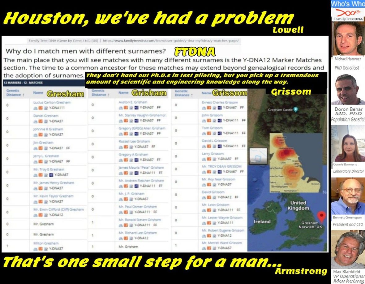 Houston, do you have a problem? Do not know as excellent genealogists know, graphics in Google images, of names such as FTDNA Hammer, FTDNA Behar, FTDNA Estes, and FTDNA Riddell. The above is a pretty popular graphic. Test piloting your genealogical search knowledge base to see if you can be dependent on. Also testing your knowledge, on information to your customers to see if it can be relied upon. Such as multiple exact matches at time of surname adoption. Like that of Grisham with a Castle at time.